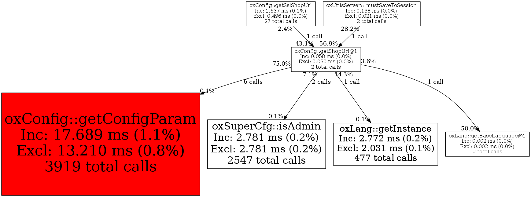| oxConfig::getShopUrl@1 | 2 | 11.1% | 58 | 0.0% | 0 | 0.0% | 8,320 | 0.0% | 8,640 | 0.0% |