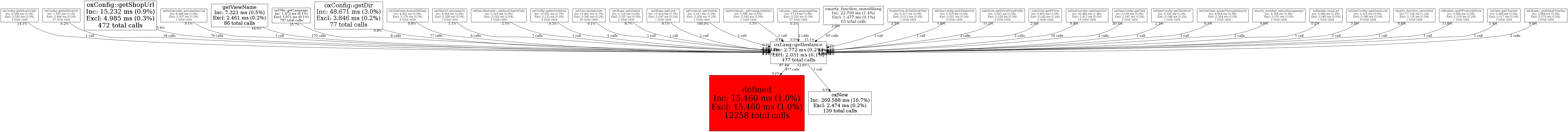 | oxLang::getInstance | 477 | 49.6% | 2,772 | 0.2% | 0 | 0.0% | 41,368 | 0.2% | 22,992 | 0.1% |