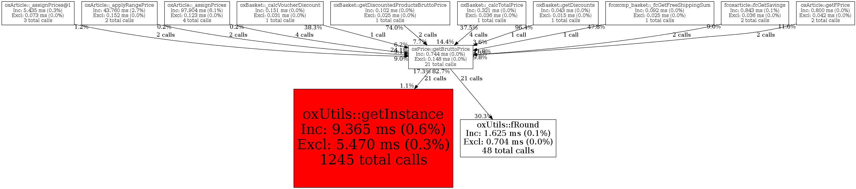 | oxBasket::getDiscountedProductsBruttoPrice | 2 | 9.5% | 57 | 7.7% | 0 | N/A% | 1,288 | 8.1% | 1,528 | 13.3% |