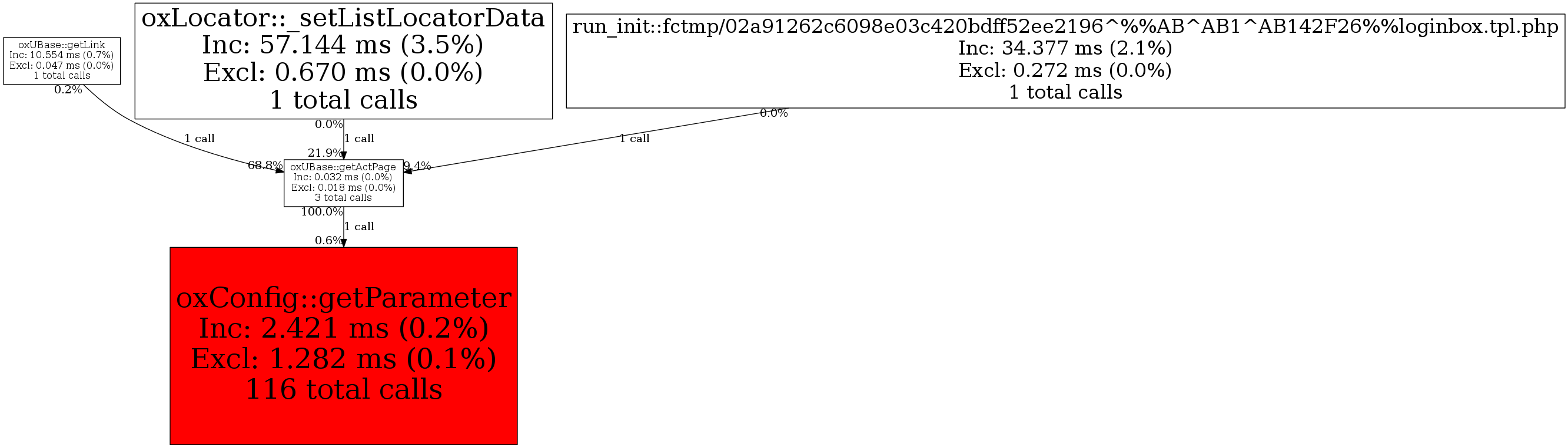 oxConfig::getParameter1 100.0% 14 43.8% 0 N/A% 1,184 5.5% 1,184 7.0%