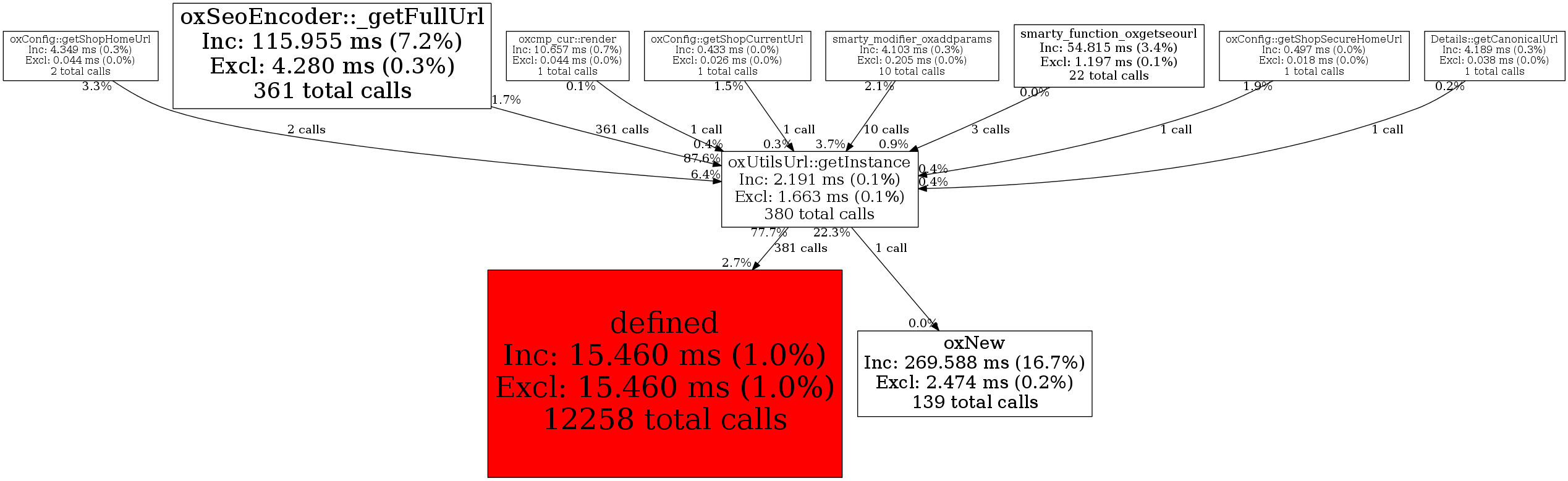 oxUtilsUrl::getInstance380 49.5% 2,191 0.1% 0 0.0% 12,768 0.1% 8,344 0.0%