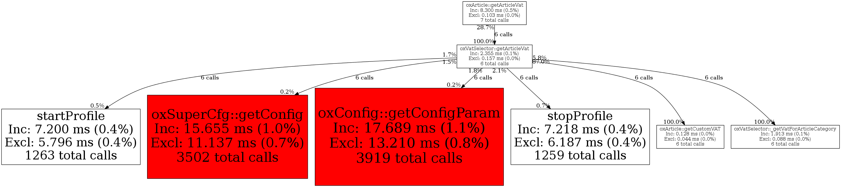 | oxVatSelector::getArticleVat | 6 | 12.5% | 2,355 | 0.1% | 4,000 | 0.6% | 21,128 | 0.1% | 25,728 | 0.1% |