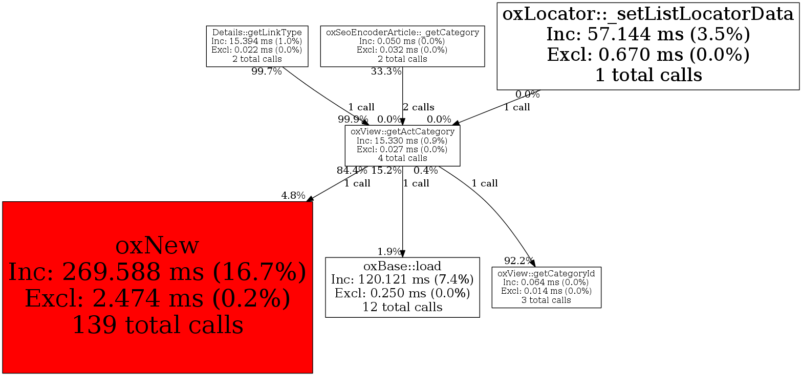 | oxView::getActCategory | 4 | 30.8% | 15,330 | 0.9% | 4,000 | 0.6% | 500,424 | 2.3% | 461,800 | 2.1% |