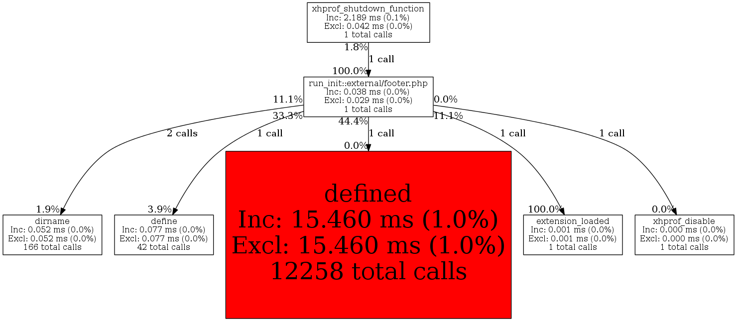 | xhprof_shutdown_function | 1 | 100.0% | 38 | 100.0% | 0 | N/A% | 9,168 | 100.0% | 0 | N/A% |