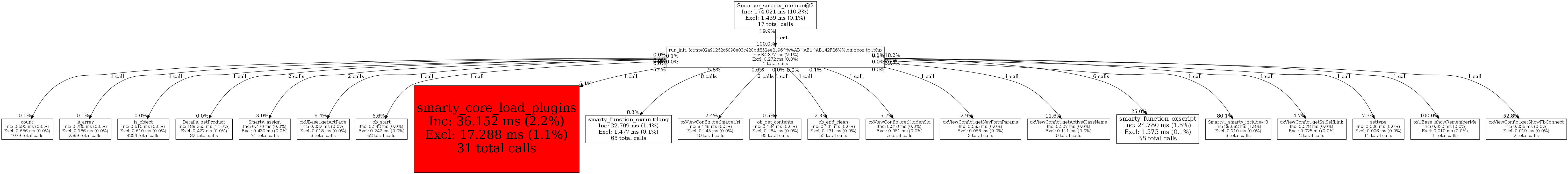 | Smarty::assign | 2 | 5.6% | 14 | 0.0% | 0 | 0.0% | 1,416 | 0.4% | 0 | 0.0% |