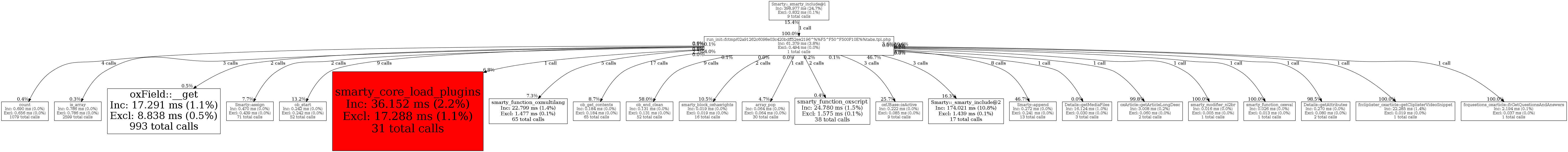 | Smarty::_smarty_include@1 | 1 | 100.0% | 61,379 | 100.0% | 8,001 | 100.0% | 345,416 | 100.0% | 394,000 | 100.0% |