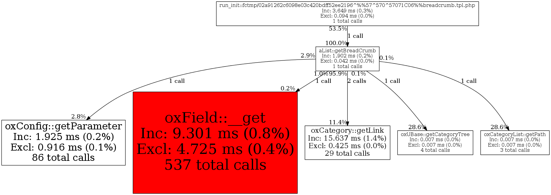 | oxField::__get | 1 | 16.7% | 19 | 1.0% | 0 | 0.0% | 1,208 | 9.6% | 0 | N/A% |