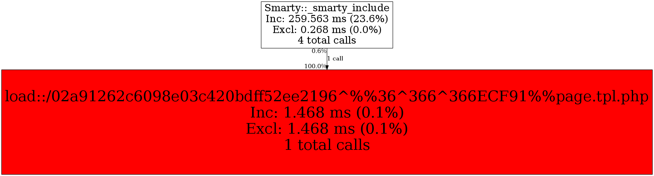 | Smarty::_smarty_include | 1 | 100.0% | 1,468 | 100.0% | 0 | N/A% | 3,336 | 100.0% | 0 | N/A% |