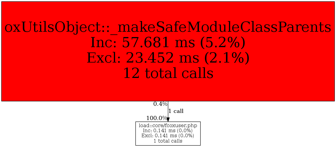 | oxUtilsObject::_makeSafeModuleClassParents | 1 | 100.0% | 141 | 100.0% | 0 | N/A% | 96,808 | 100.0% | 94,888 | 100.0% |