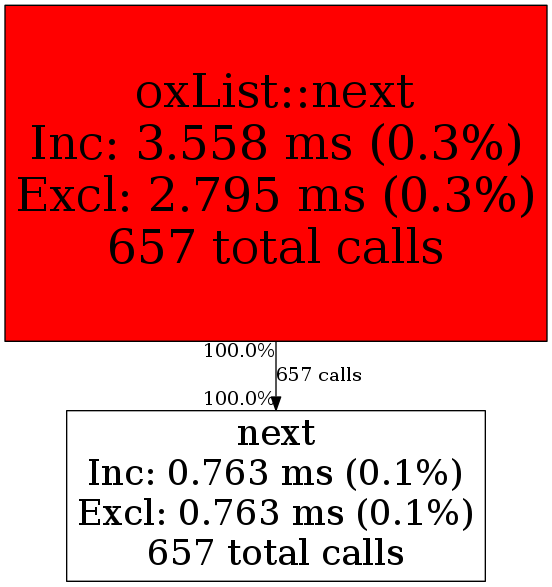 | oxList::next | 657 | 100.0% | 763 | 100.0% | 4,000 | 100.0% | 1,080 | 100.0% | 0 | N/A% |