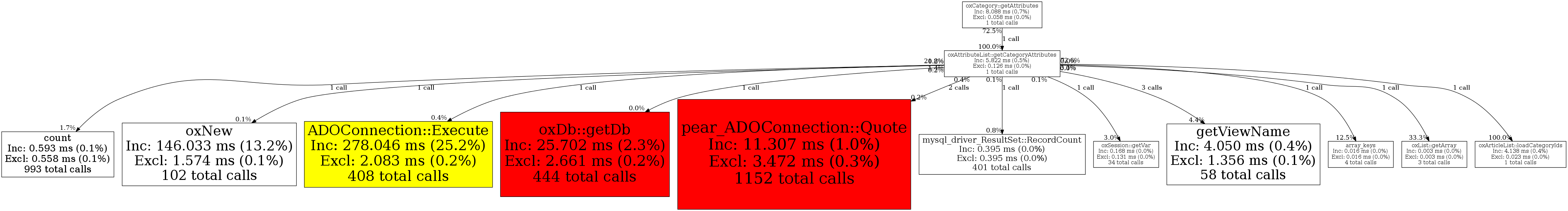 | oxCategory::getAttributes | 1 | 100.0% | 5,822 | 100.0% | 4,001 | 100.0% | 33,696 | 100.0% | 62,672 | 100.0% |