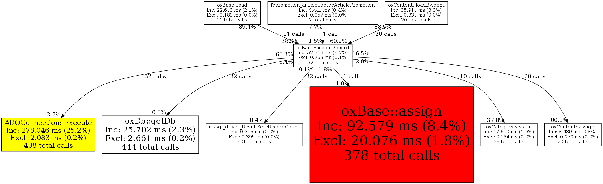 | oxBase::assign | 1 | 0.8% | 949 | 1.8% | 0 | 0.0% | 25,320 | 2.9% | 27,736 | 4.7% |