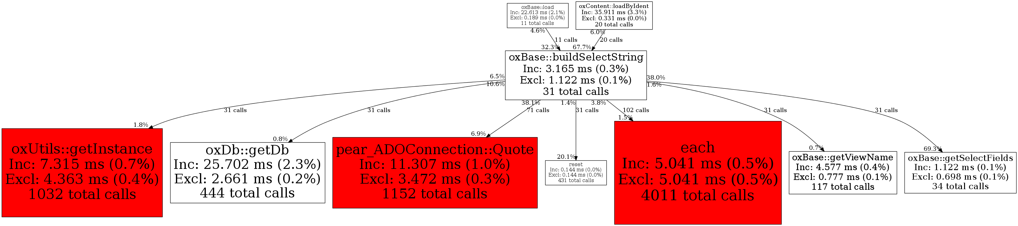 | oxBase::getSelectFields | 31 | 9.5% | 777 | 24.5% | 4,001 | 100.0% | 22,912 | 60.8% | 25,016 | 64.8% |
