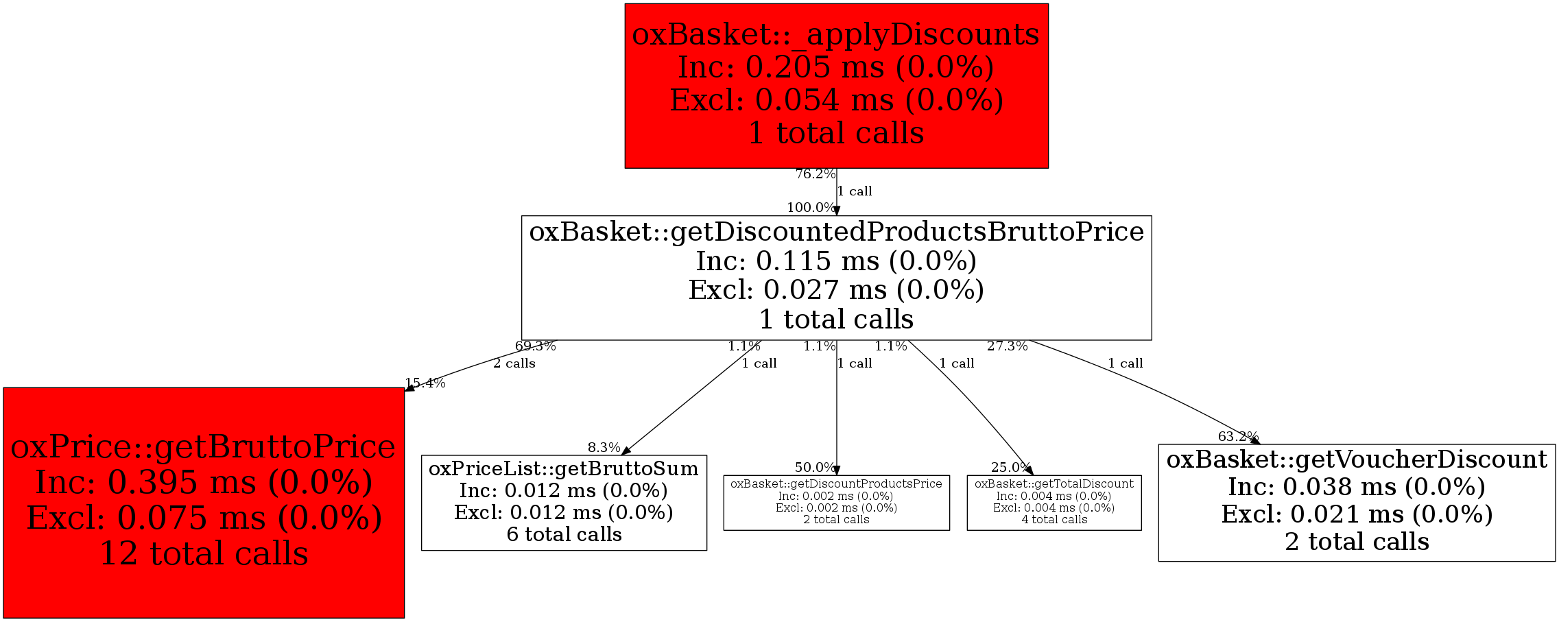 | oxBasket::getDiscountedProductsBruttoPrice | 1 | 7.7% | 115 | 0.0% | 0 | 0.0% | 12,000 | 0.1% | 10,848 | 0.1% |
