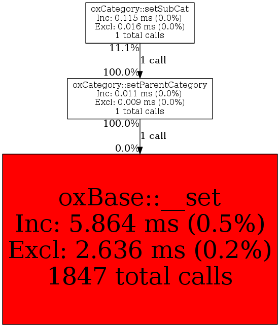 | oxCategory::setParentCategory | 1 | 12.5% | 11 | 0.0% | 0 | 0.0% | 3,176 | 0.0% | 2,584 | 0.0% |