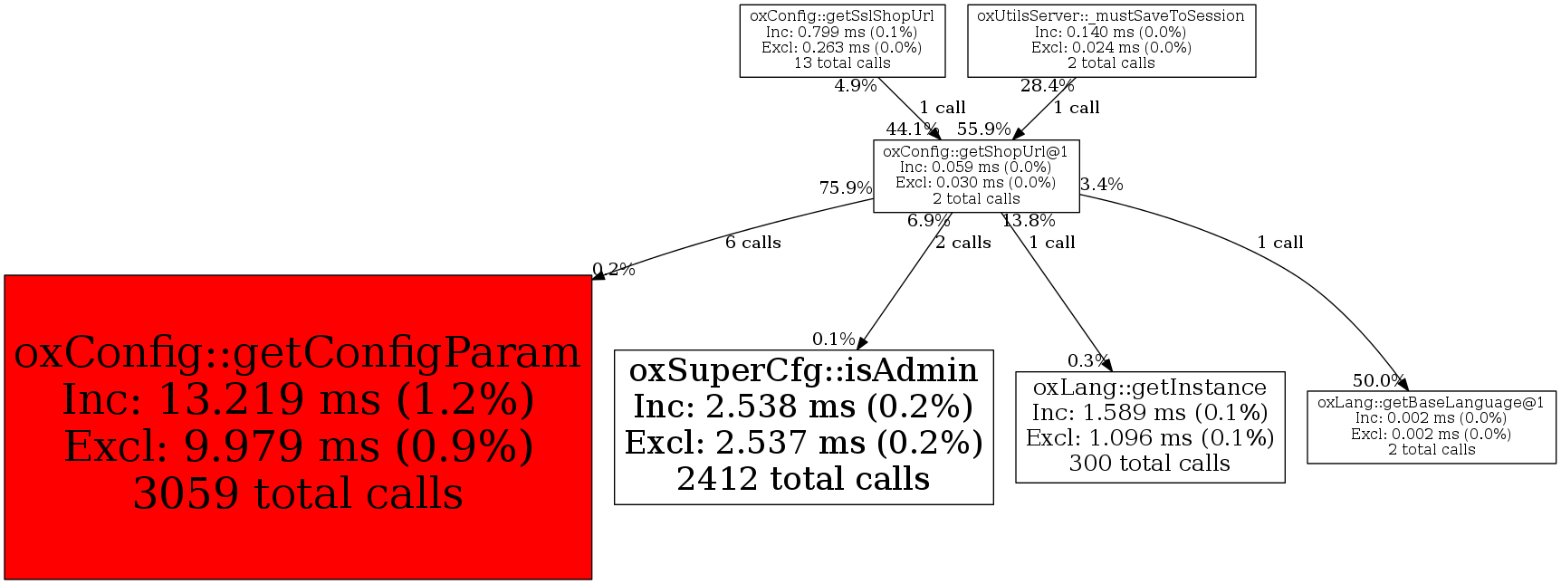 | oxConfig::getShopUrl@1 | 2 | 11.1% | 59 | 0.0% | 0 | 0.0% | 8,320 | 0.0% | 8,640 | 0.0% |