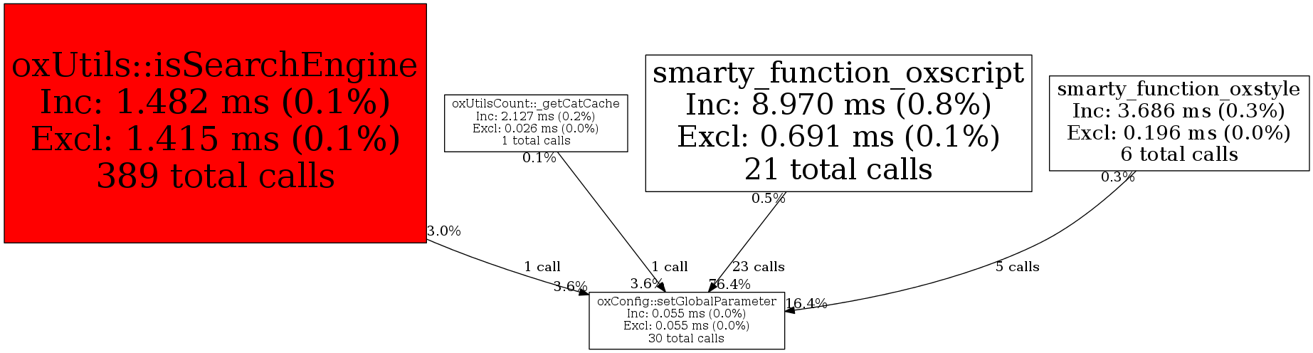 | oxUtils::isSearchEngine | 1 | 3.3% | 2 | 3.6% | 0 | N/A% | 1,560 | 17.4% | 744 | 28.6% |