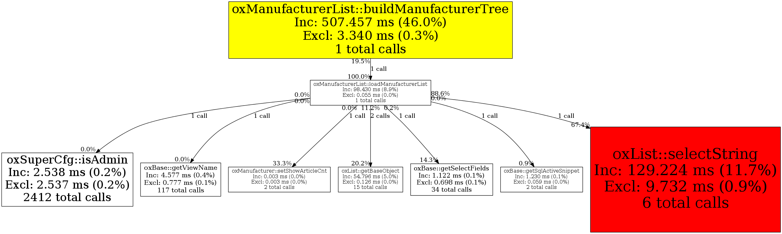 | oxManufacturerList::loadManufacturerList | 1 | 6.7% | 98,430 | 8.9% | 84,005 | 14.9% | 4,635,384 | 23.0% | 4,693,456 | 23.0% |