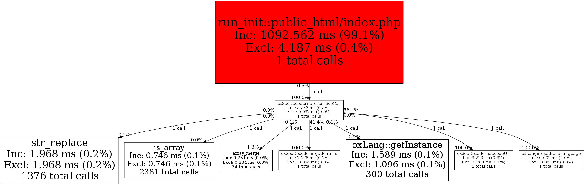 | oxSeoDecoder::processSeoCall | 1 | 7.1% | 5,543 | 0.5% | 4,000 | 0.7% | 255,440 | 1.3% | 252,680 | 1.2% |