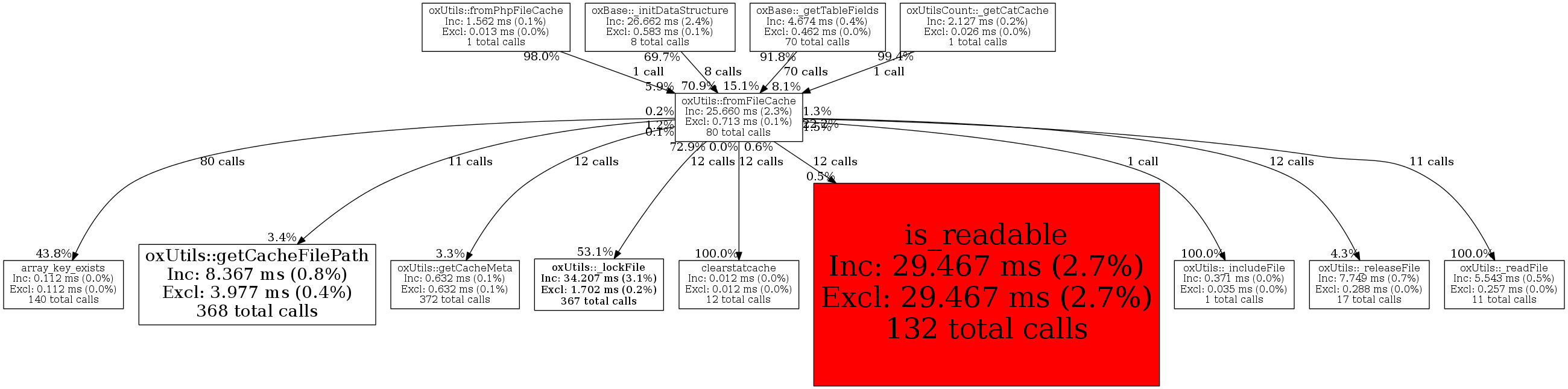 | oxUtils::fromFileCache | 80 | 32.1% | 25,660 | 2.3% | 16,002 | 2.8% | 346,648 | 1.7% | 536,320 | 2.6% |