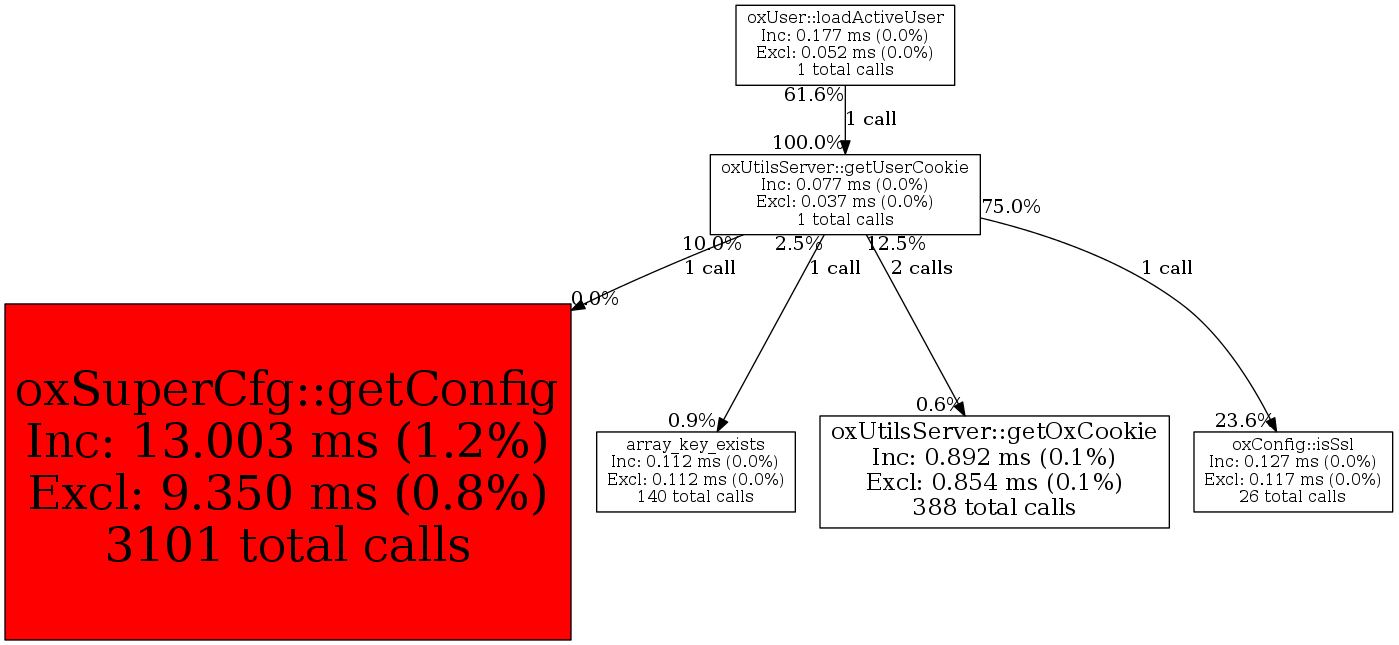oxUtilsServer::getUserCookie1 8.3% 77 0.0% 0 0.0% 12,368 0.1% 12,368 0.1%