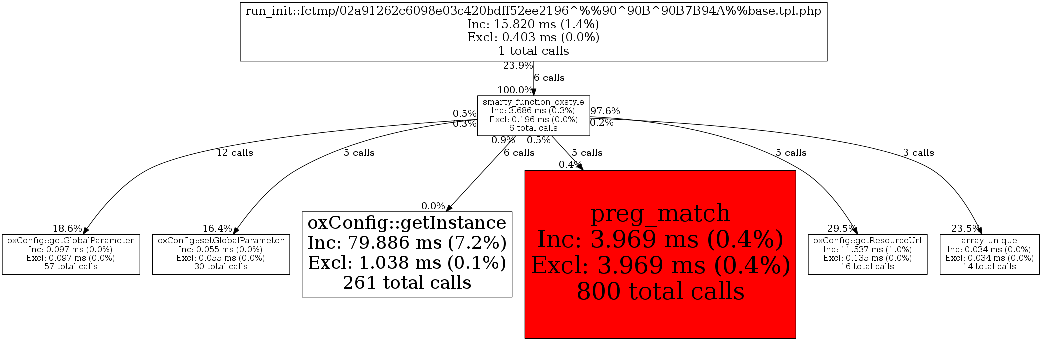 | oxConfig::getInstance | 6 | 16.7% | 31 | 0.8% | 0 | 0.0% | 1,104 | 7.1% | 576 | 4.4% |