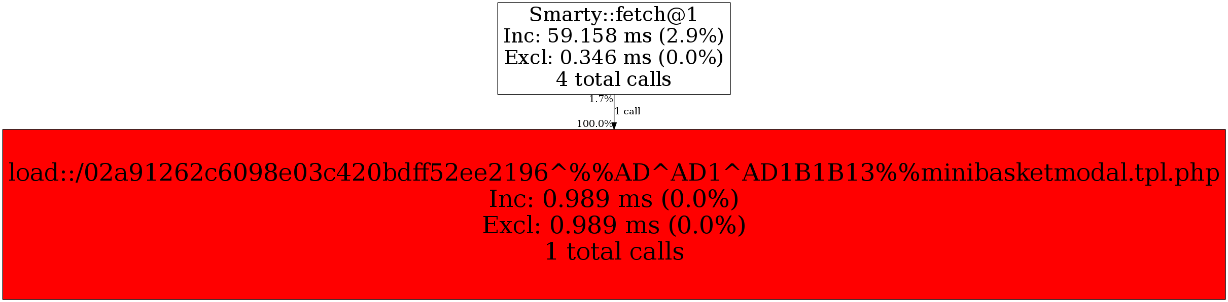 | Smarty::fetch@1 | 1 | 100.0% | 989 | 100.0% | 0 | N/A% | 3,376 | 100.0% | 0 | N/A% |