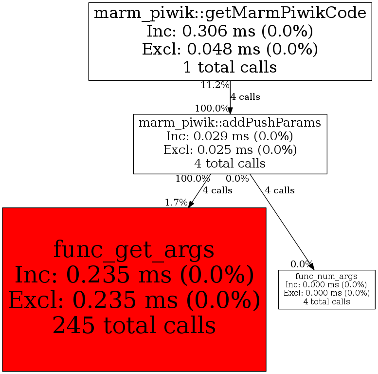 | marm_piwik::addPushParams | 4 | 22.2% | 29 | 0.0% | 0 | 0.0% | 8,216 | 0.0% | 0 | 0.0% |