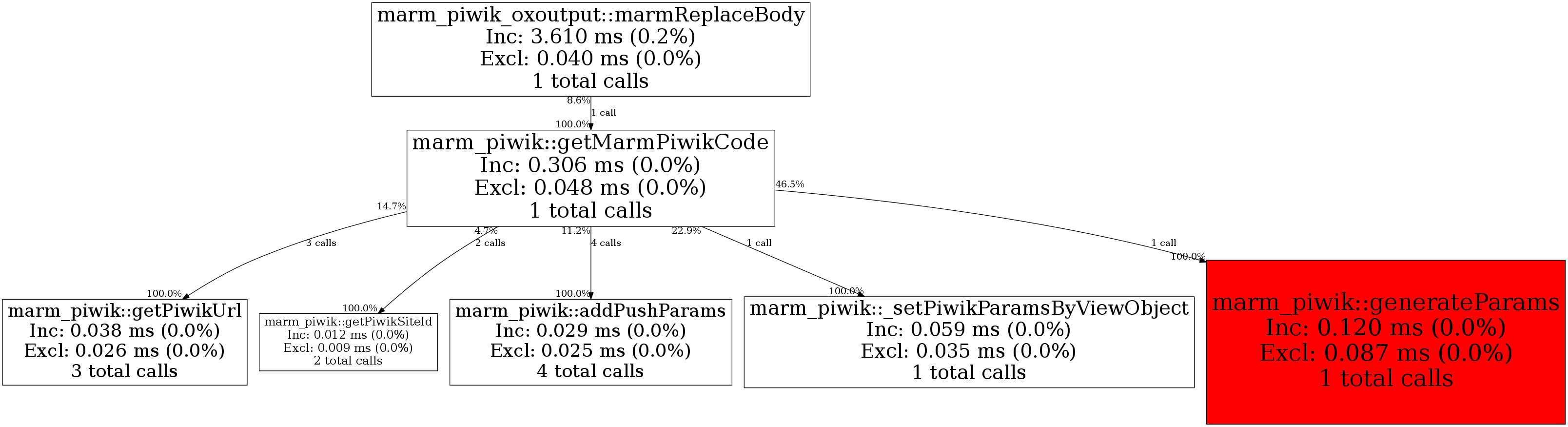 | marm_piwik::generateParams | 1 | 9.1% | 120 | 39.2% | 0 | N/A% | 11,984 | 26.4% | 0 | N/A% |