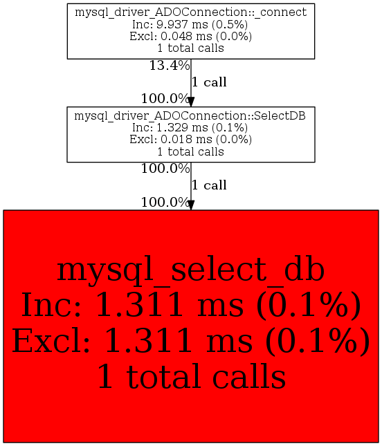 | mysql_driver_ADOConnection::_connect | 1 | 100.0% | 1,329 | 100.0% | 0 | N/A% | 2,760 | 100.0% | 936 | 100.0% |