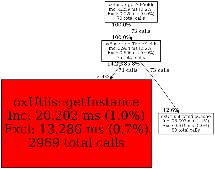 | oxBase::_getTableFields | 73 | 32.4% | 3,984 | 0.2% | 0 | 0.0% | 14,000 | 0.1% | 31,400 | 0.1% |