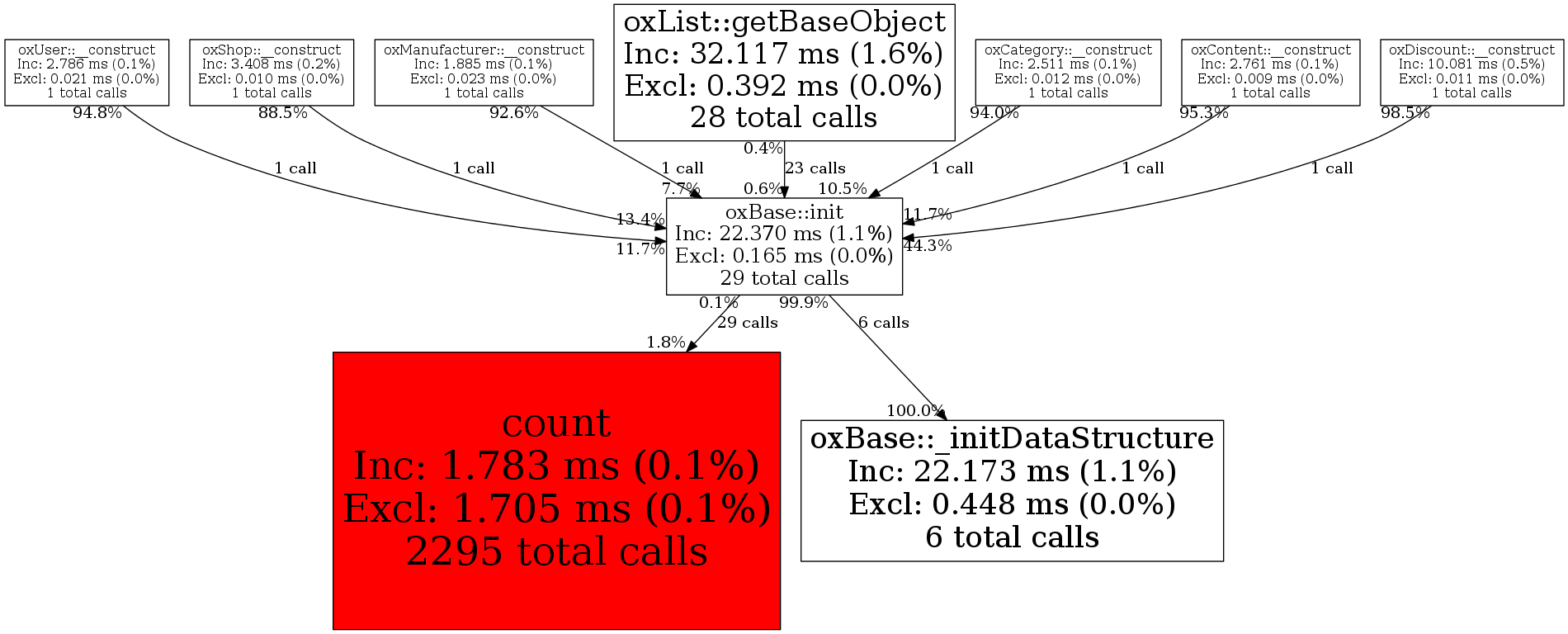 | oxList::getBaseObject | 23 | 79.3% | 133 | 0.6% | 0 | 0.0% | 2,936 | 1.8% | 0 | 0.0% |