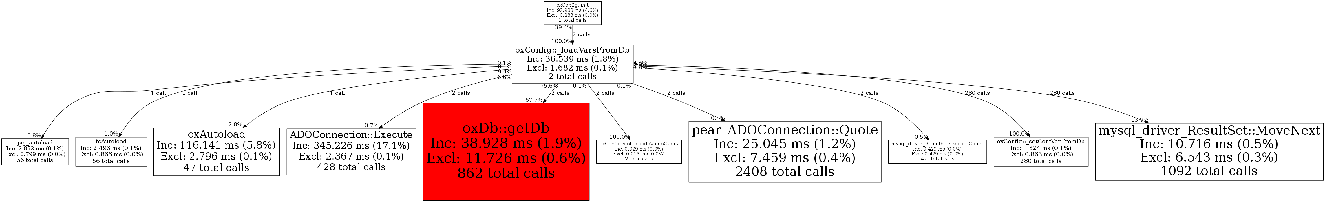| oxConfig::_loadVarsFromDb | 2 | 0.3% | 36,539 | 1.8% | 8,001 | 0.7% | 846,616 | 4.7% | 918,288 | 4.0% |