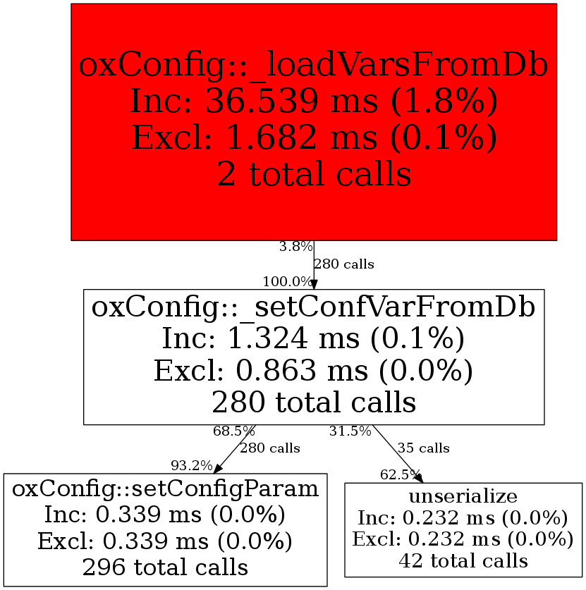 | oxConfig::_loadVarsFromDb | 280 | 100.0% | 1,324 | 100.0% | 0 | N/A% | 135,080 | 100.0% | 186,736 | 100.0% |
