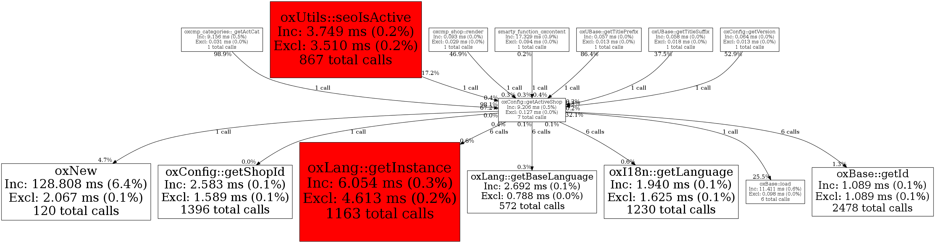 | oxLang::getInstance | 6 | 22.2% | 35 | 0.4% | 0 | 0.0% | 1,104 | 0.3% | 1,096 | 0.3% |