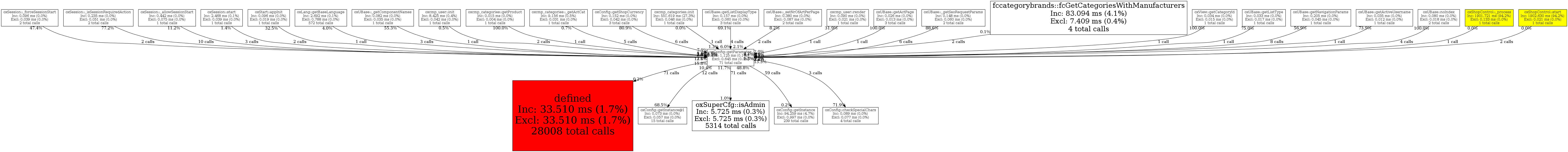 | fccategorybrands::fcGetCategoriesWithManufacturers | 2 | 2.8% | 47 | 4.2% | 0 | N/A% | 1,296 | 3.1% | 0 | 0.0% |