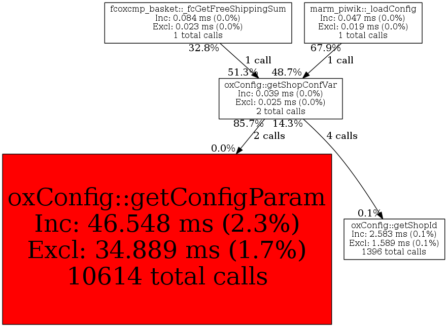 | oxConfig::getShopConfVar | 2 | 14.3% | 39 | 0.0% | 0 | 0.0% | 5,280 | 0.0% | 4,168 | 0.0% |