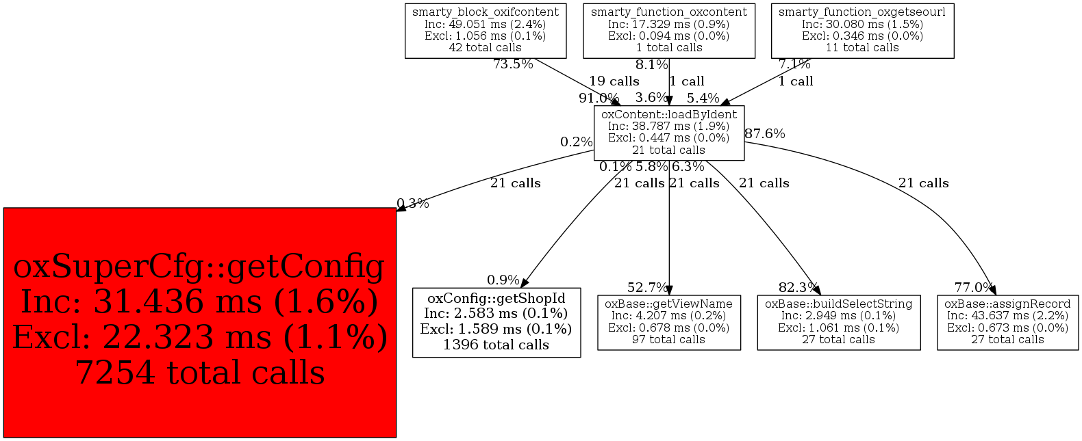 | oxContent::loadByIdent | 21 | 15.9% | 38,787 | 1.9% | 24,002 | 2.1% | 394,968 | 2.2% | 14,736 | 0.1% |