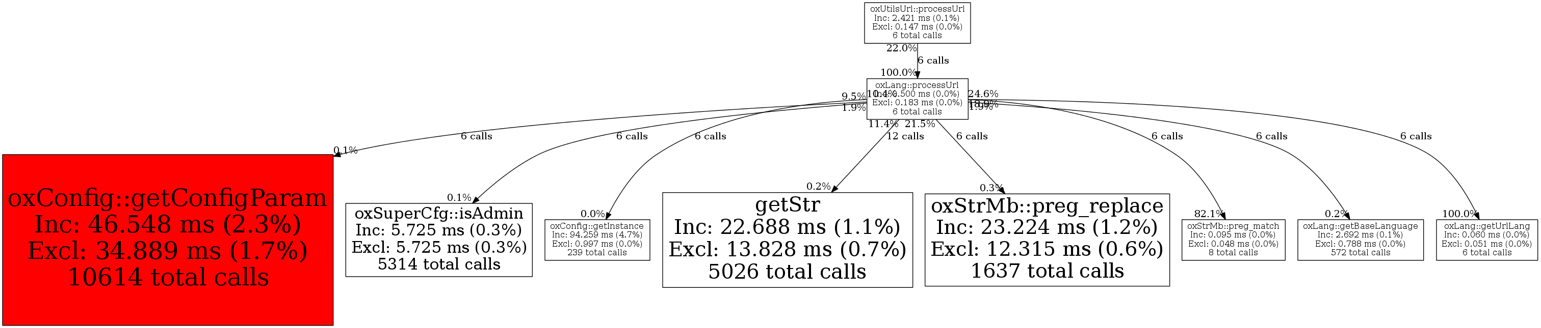 | oxLang::processUrl | 6 | 9.1% | 500 | 0.0% | 0 | 0.0% | 17,400 | 0.1% | 18,008 | 0.1% |