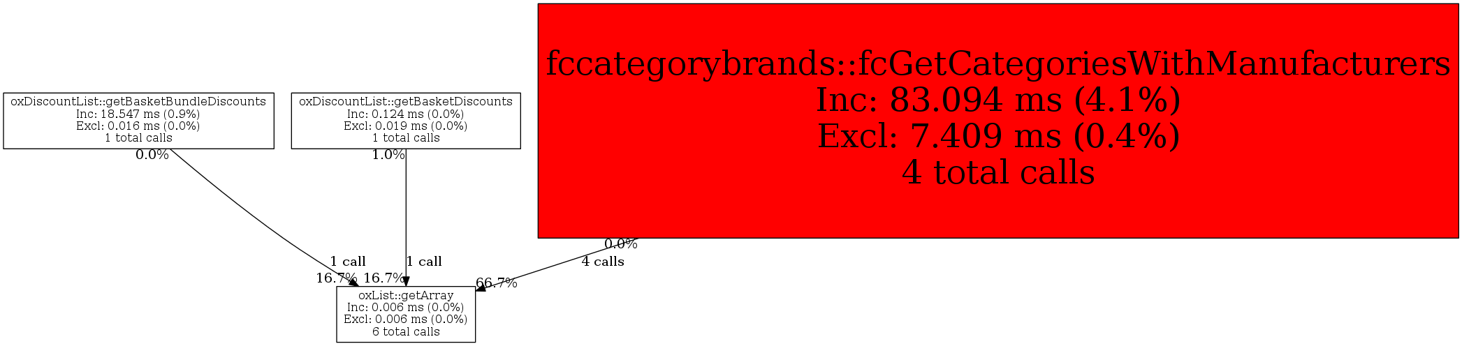 | fccategorybrands::fcGetCategoriesWithManufacturers | 4 | 66.7% | 4 | 66.7% | 0 | N/A% | 1,128 | 33.6% | 0 | 0.0% |