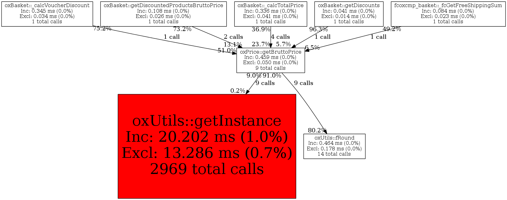 | oxBasket::getDiscountedProductsBruttoPrice | 2 | 22.2% | 60 | 13.1% | 0 | 0.0% | 1,288 | 4.0% | 1,528 | 4.8% |