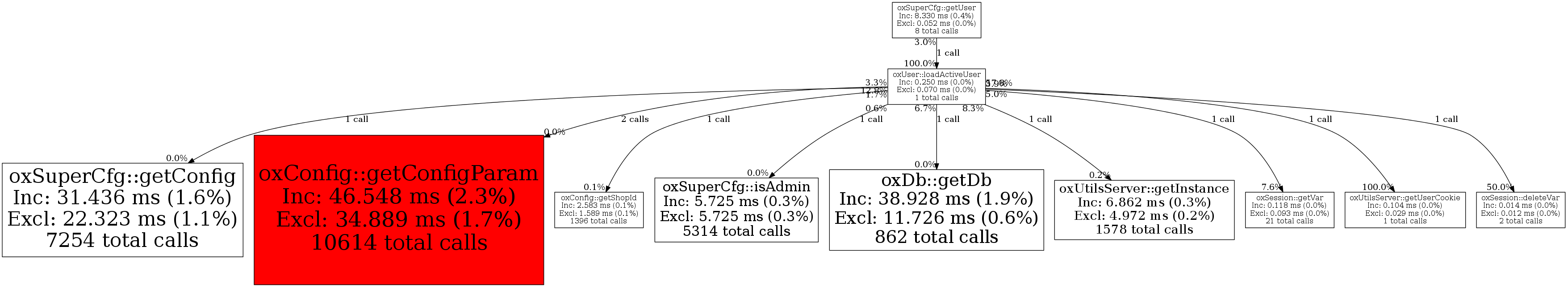 oxUser::loadActiveUser1 5.9% 250 0.0% 0 0.0% 27,640 0.2% 25,632 0.1%
