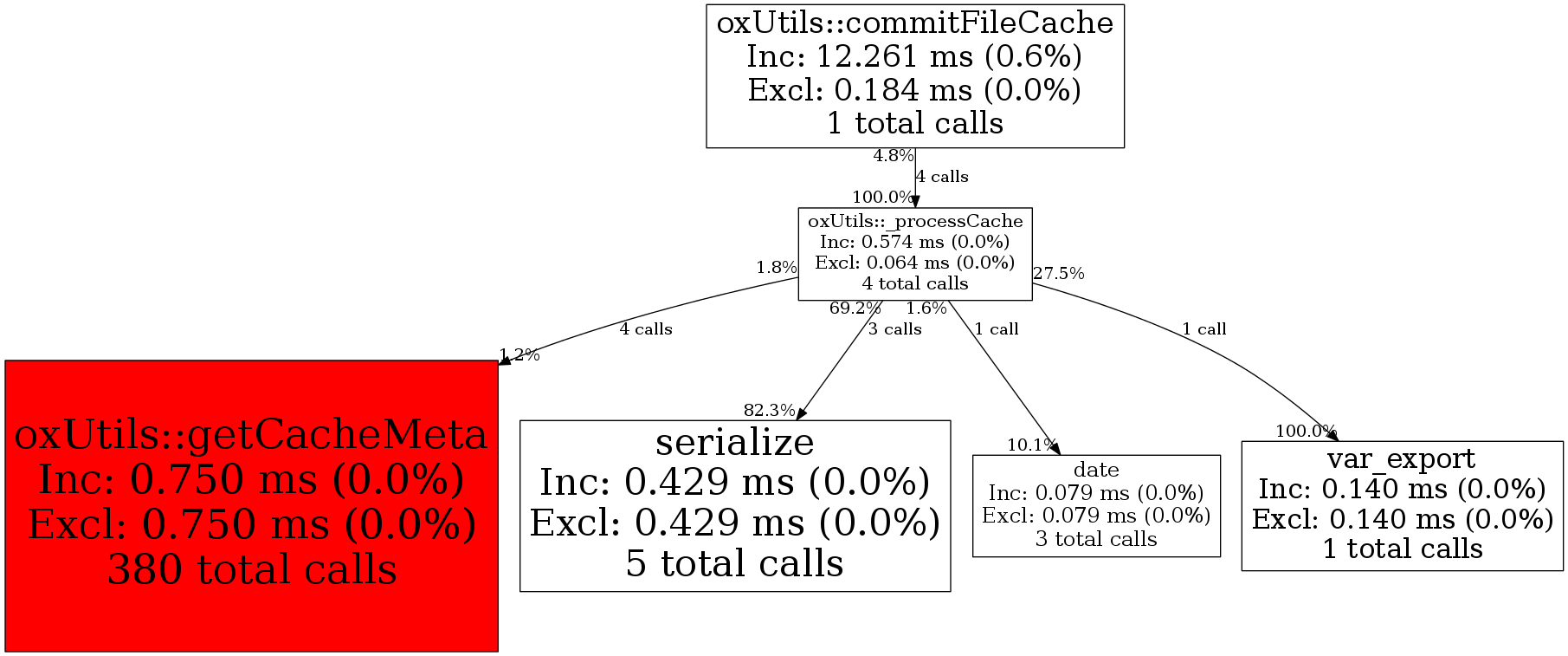 | oxUtils::getCacheMeta | 4 | 44.4% | 9 | 1.6% | 0 | N/A% | 1,928 | 5.1% | 0 | N/A% |