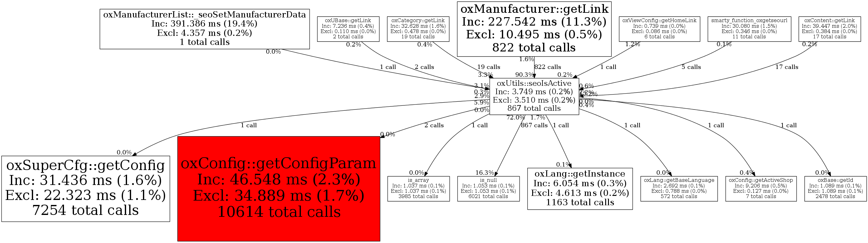 | oxCategory::getLink | 19 | 2.2% | 123 | 3.3% | 0 | 0.0% | 1,104 | 4.2% | 0 | 0.0% |