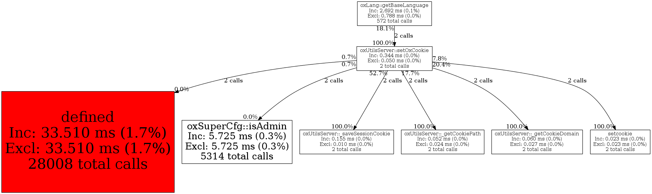 | oxUtilsServer::_getCookiePath | 2 | 16.7% | 52 | 15.1% | 0 | 0.0% | 4,448 | 12.1% | 4,176 | 12.0% |