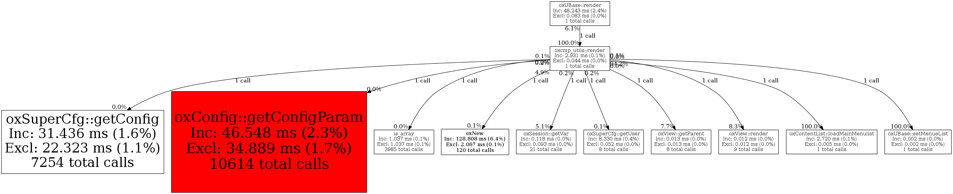 | oxConfig::getConfigParam | 1 | 10.0% | 7 | 0.2% | 0 | 0.0% | 1,184 | 4.4% | 0 | 0.0% |