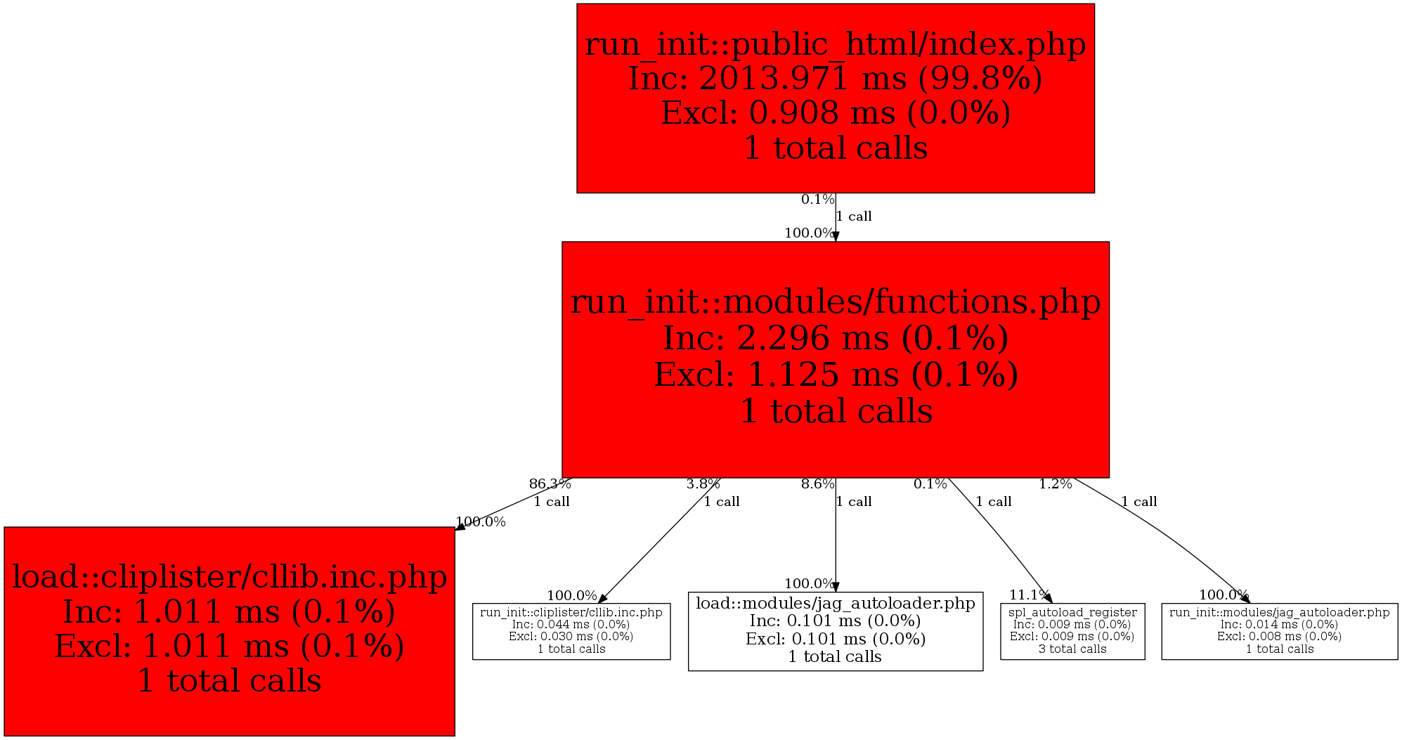 | run_init::modules/functions.php | 1 | 8.3% | 2,296 | 0.1% | 0 | 0.0% | 20,928 | 0.1% | 19,432 | 0.1% |