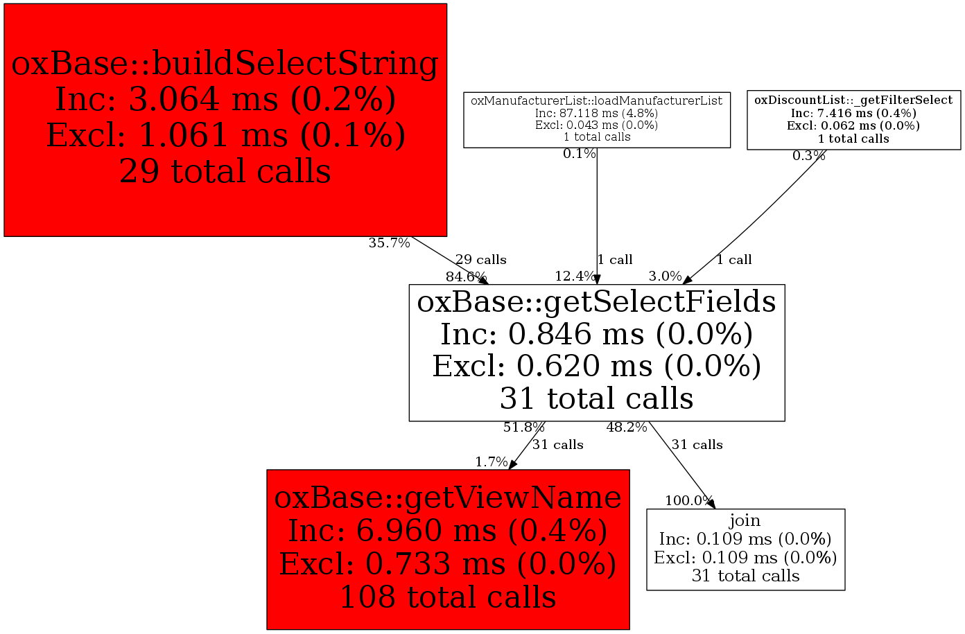 | oxBase::getSelectFields | 31 | 24.6% | 846 | 0.0% | 0 | 0.0% | 26,040 | 0.1% | 32,856 | 0.1% |