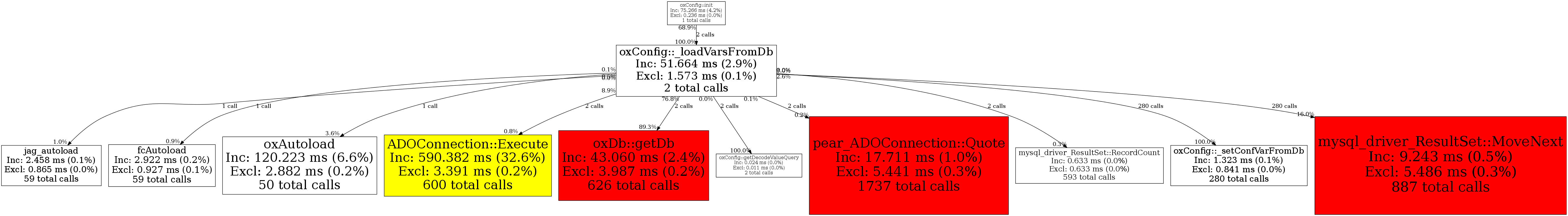 oxConfig::_loadVarsFromDb2 0.3% 51,664 2.9% 8,001 0.9% 846,488 3.4% 915,984 3.6%