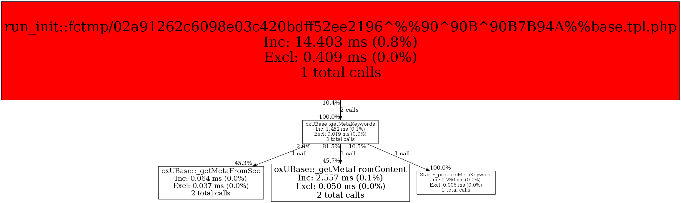 | Start::_prepareMetaKeyword | 1 | 33.3% | 236 | 16.3% | 0 | N/A% | 5,936 | 56.1% | 0 | 0.0% |